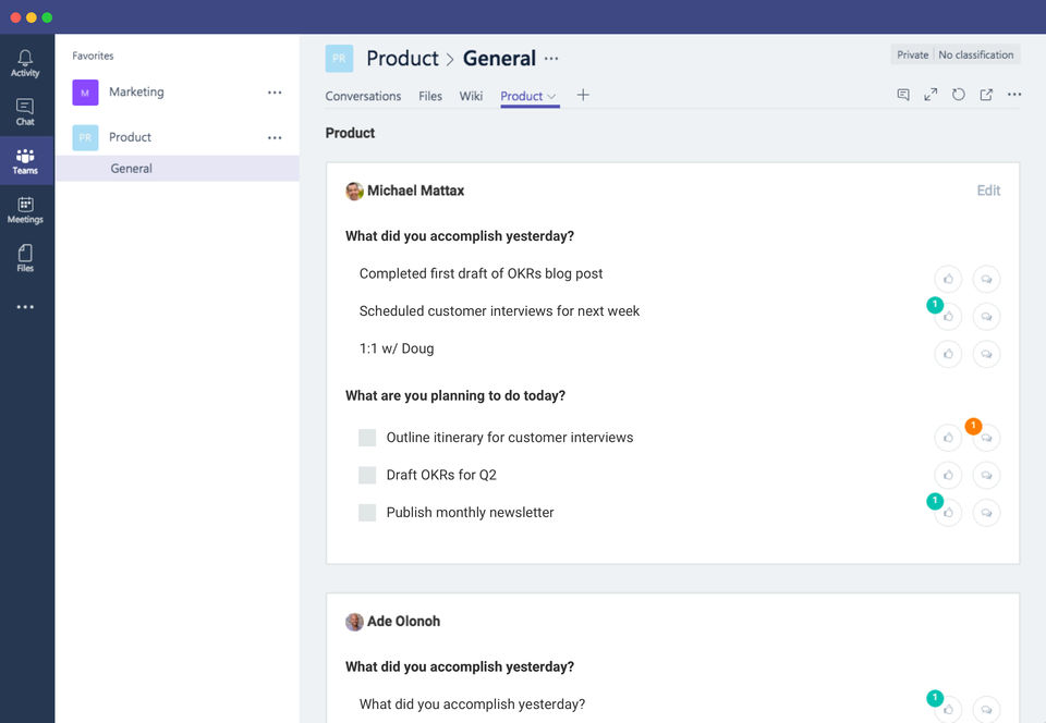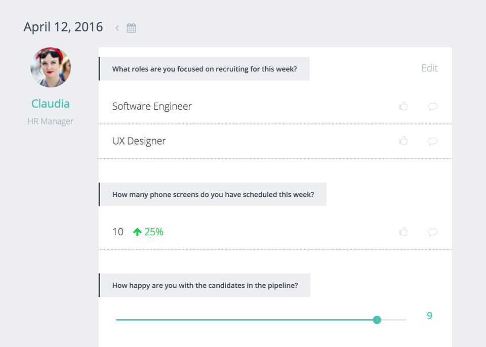 - Custom check-ins for teams & individuals
