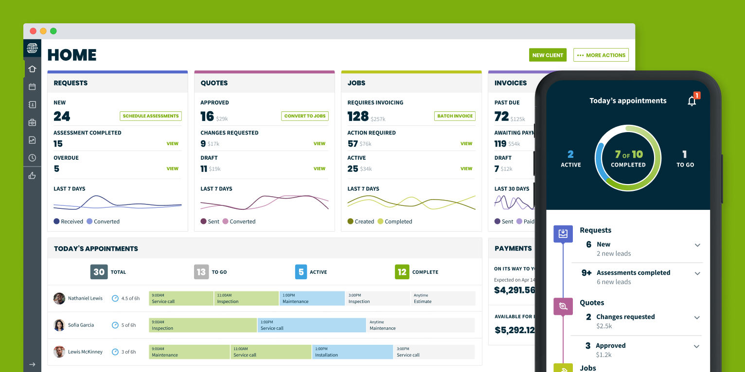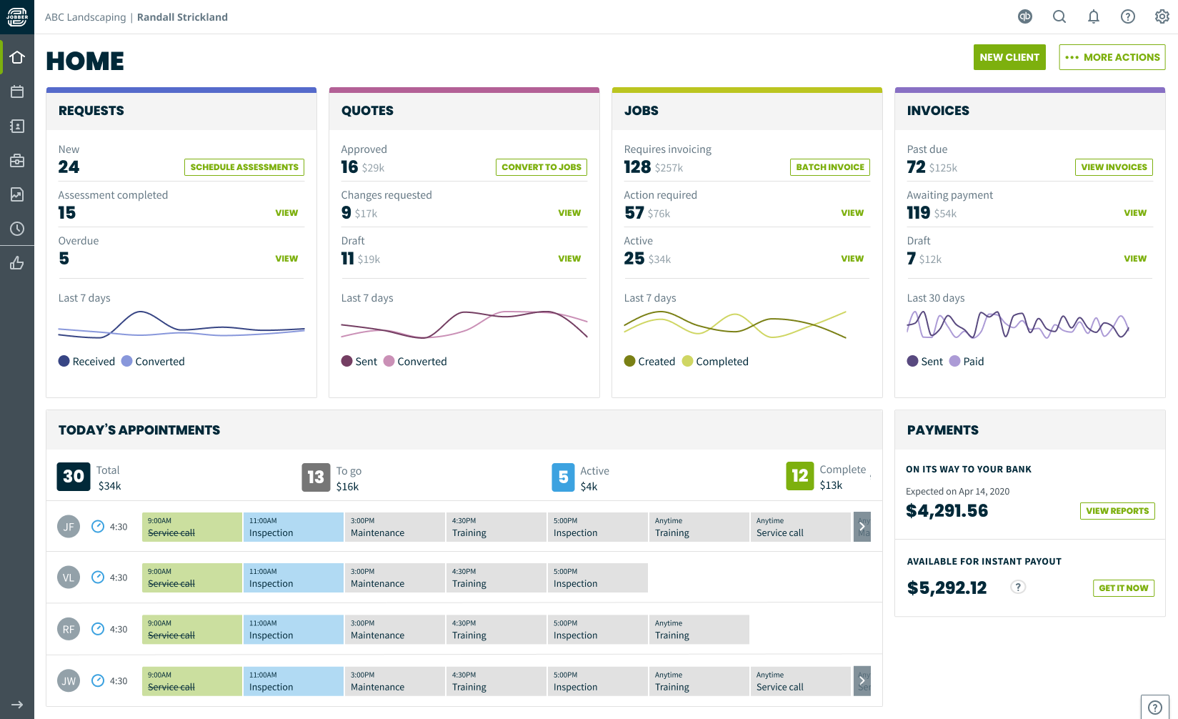 The solution offers features like scheduling, invoicing, a client database, quotes and more.