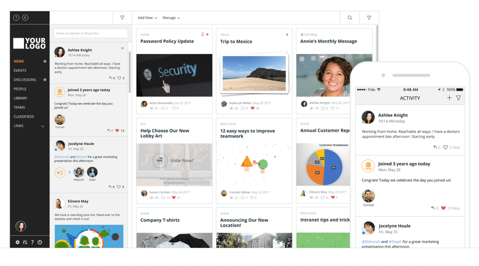 Events & Activity Feeds: Keep employees informed about happenings across the organization.