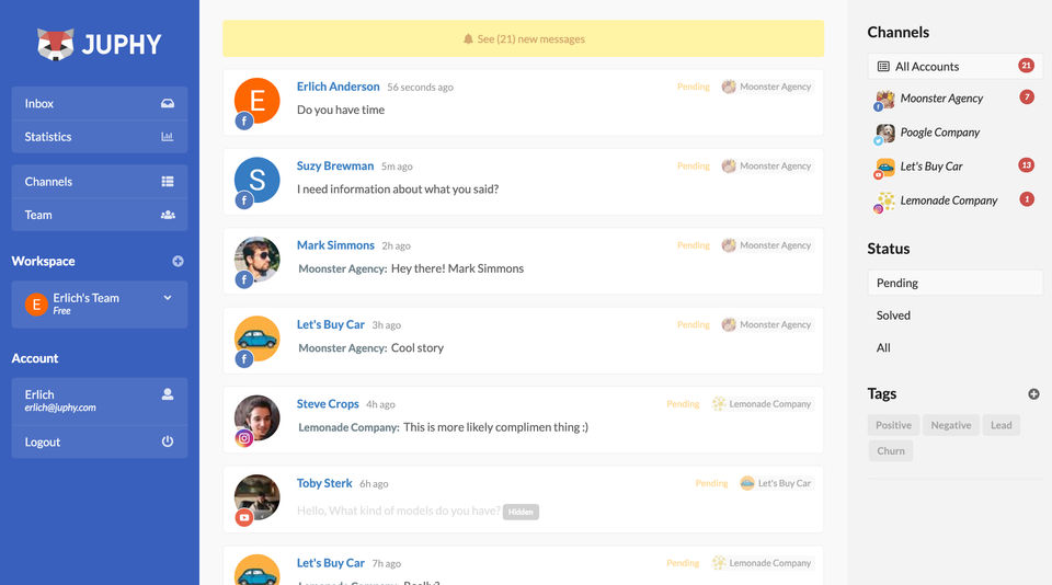 Juphy is the Social Media Management Software used for the below functionalities.