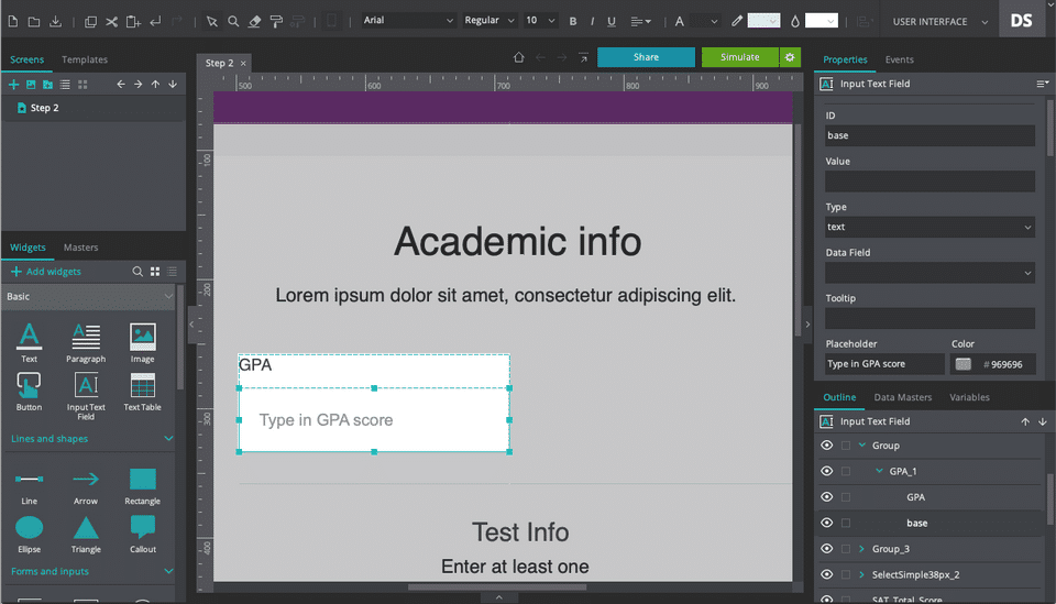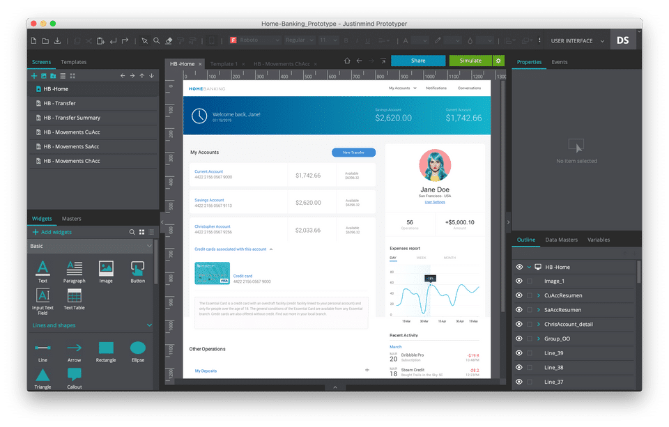 interactive prototyping simulation for UX design projects; my job is to solve user experience problems for customers