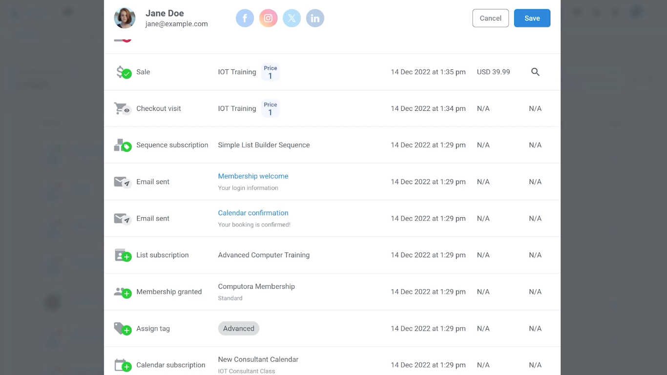 Email & Automation: Automated email campaigns, behavior-based triggers, lead tagging, split testing.