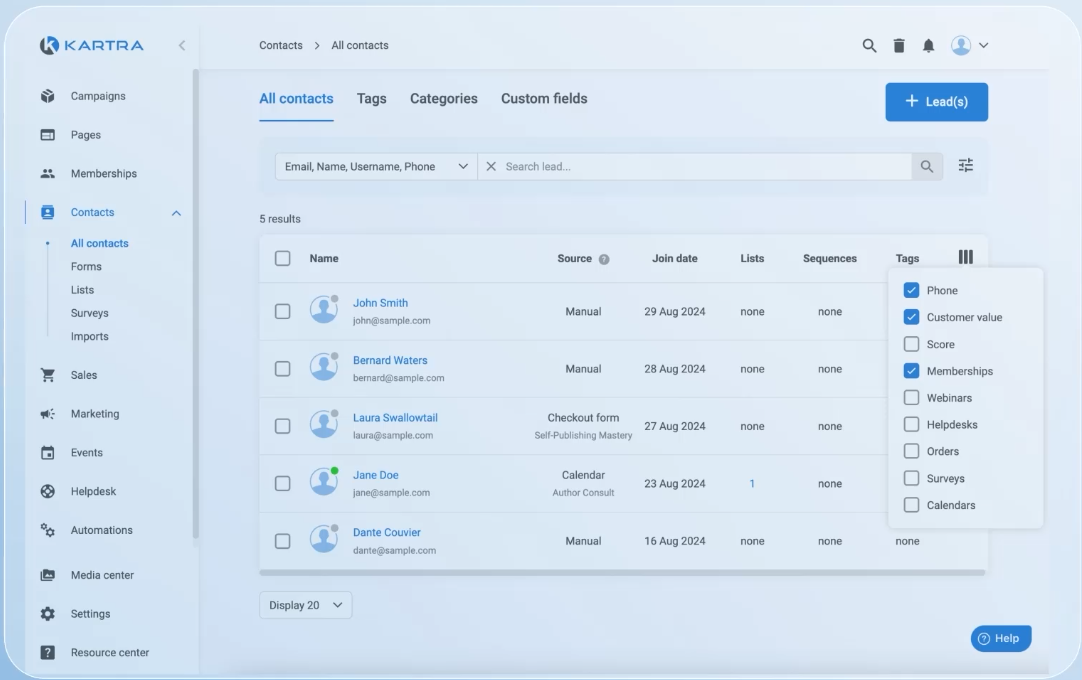 Top 5 KARTRA features