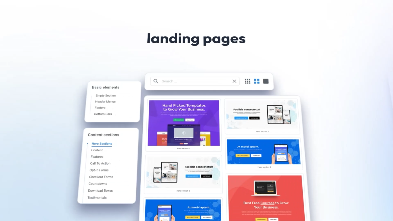 Page & Funnel Builder: Drag-and-drop editor with 100+ pre-designed templates.