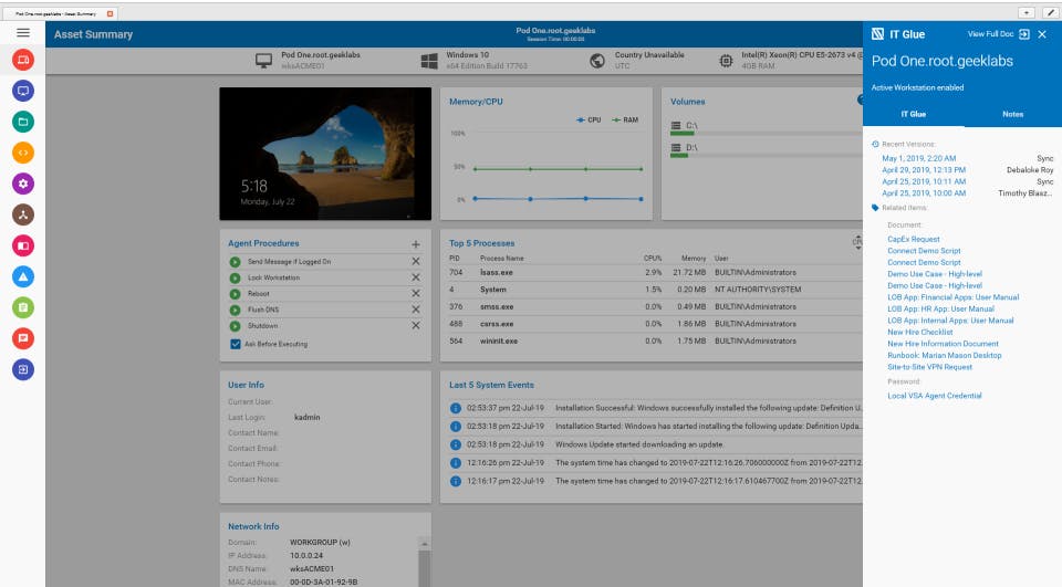 Kaseya VSA offers an all‑in‑one RMM solution with powerful automation, robust security controls, and seamless integrations. Its intuitive dashboard and policy‑driven workflows enable IT teams to scale efficiently, reduce manual tasks, and maintain compliance. Ideal for MSPs and internal IT departments, it delivers high visibility and proactive system management.Benefits of Kaseya VSA