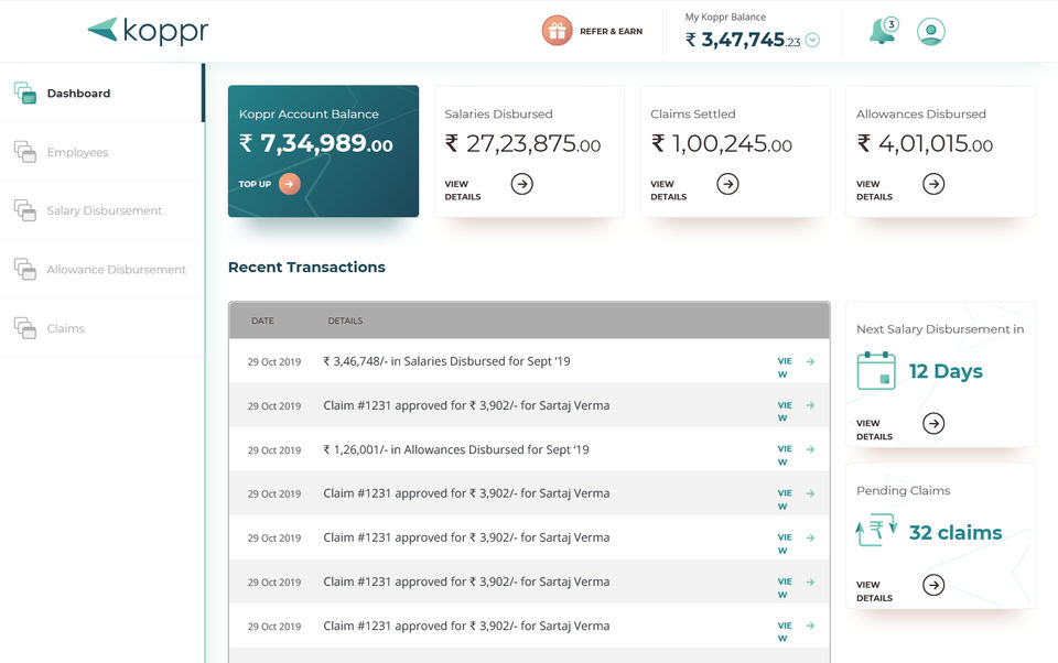 Koppr is the Personal Finance Software used for the below functionalities.