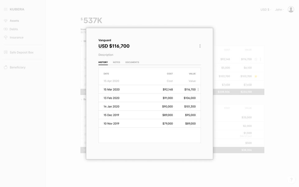 - Connect Bank & Investment accounts to Get latest values automatically.
