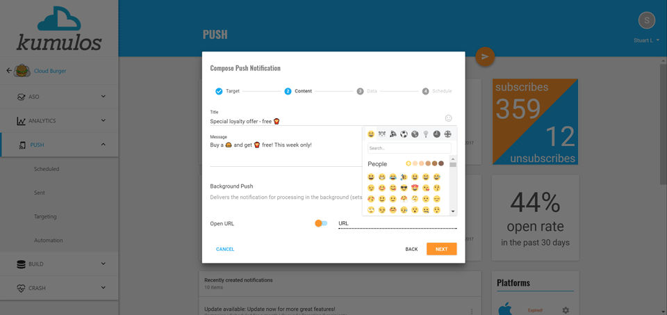 Pushnotifications combined with analytics, so based on certain triggers in our app we can fire targeted & personalized engaged messages.