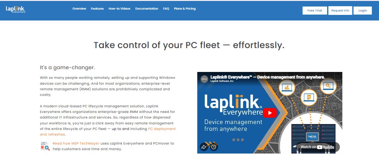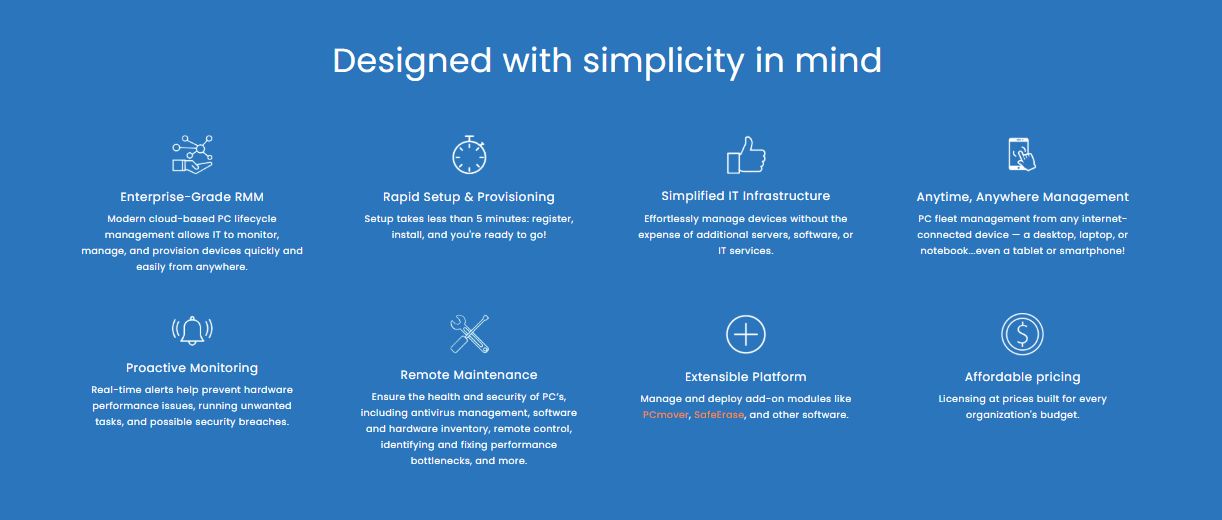 Laplink is the Remote Monitoring And Management (RMM) Software used for the below functionalities.