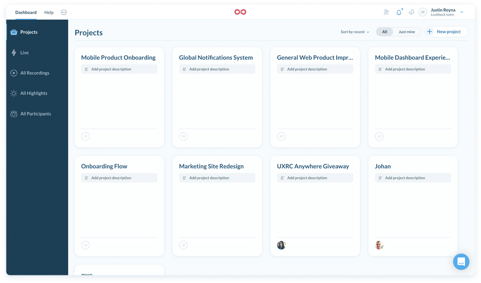 I really don't like how I cannot close the chat portion when viewing sessions on lookback. I usually use slack to contact the user research moderator instead of using the chat/comment portion. Because I want to make the video screen larger I wish I could close the chat part. I also wish the entire block would be clickable when trying to see old recordings instead of just the text link of the participant. I also wish I didn't have to click twice to join a live session.