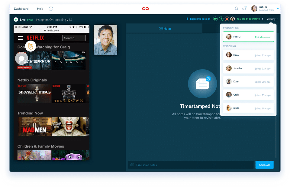 I really like how I can add notes to the videos and also easily watch the old recordings and rewind/fast forward easily. I like the ease that lookback gives people, I am able to watch a live session from anywhere and also able to go back and refer to old recordings.