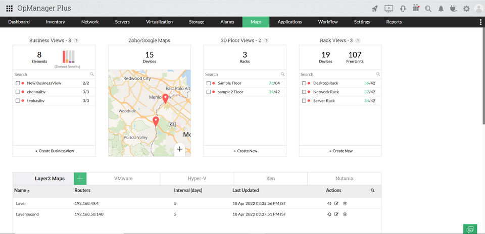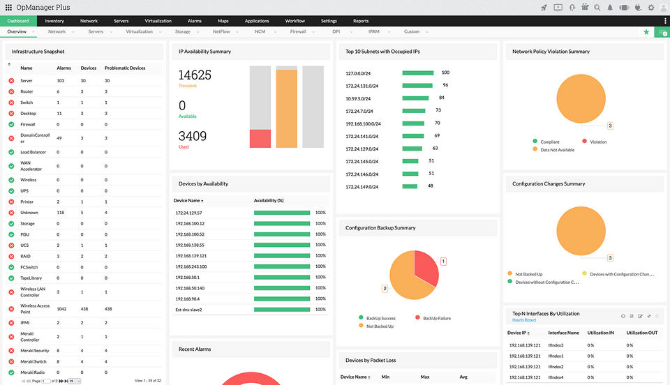 ManageEngine OpManager Plus is an all-inclusive IT operations management solution that aids IT administrators in monitoring the entire IT infrastructure. Using OpManager Plus, you can monitor networks, servers, IP addresses, and switch ports, manage bandwidth and network configurations, analyze firewall rules, logs, and policies, track application usage, and monitor storage devices from a single dashboard. OpManager Plus seamlessly integrates with ITSM tools like ManageEngine ServiceDesk Plus and ServiceNow, as well as popular communication platforms like Slack, improving collaboration and efficiency.