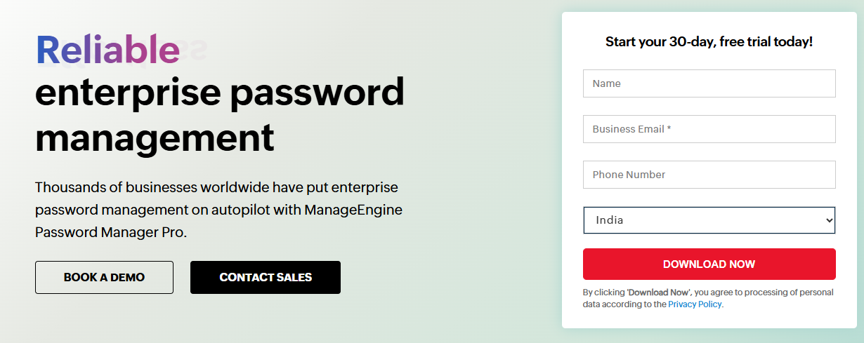 ManageEngine Password Manager Pro is not allowing Free Trial.
