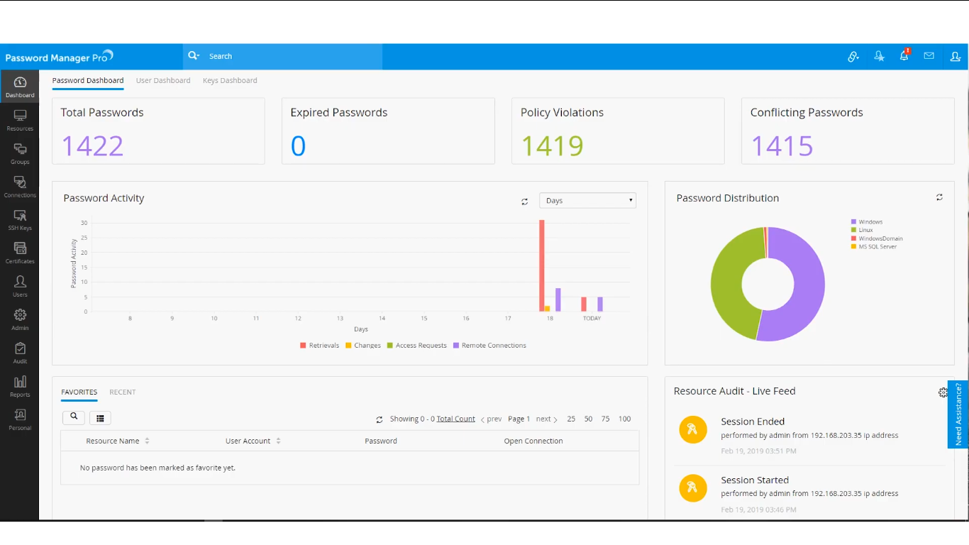 ManageEngine Password Manager Pro is the Password Management Software used for the below functionalities.