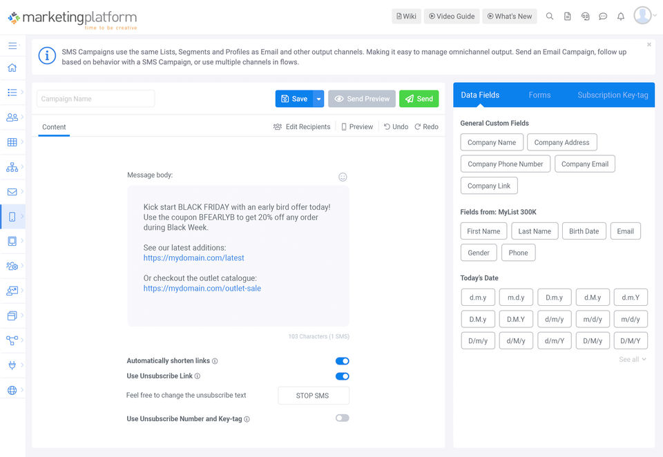 MarketingPlatform is the Email Marketing Software used for the below functionalities.
