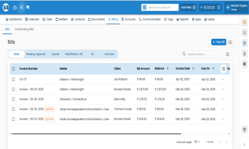 Vendor Management: Evaluate and manage law firms and service providers with performance metrics and engagement tracking.
