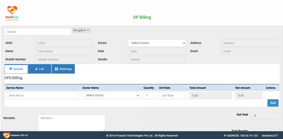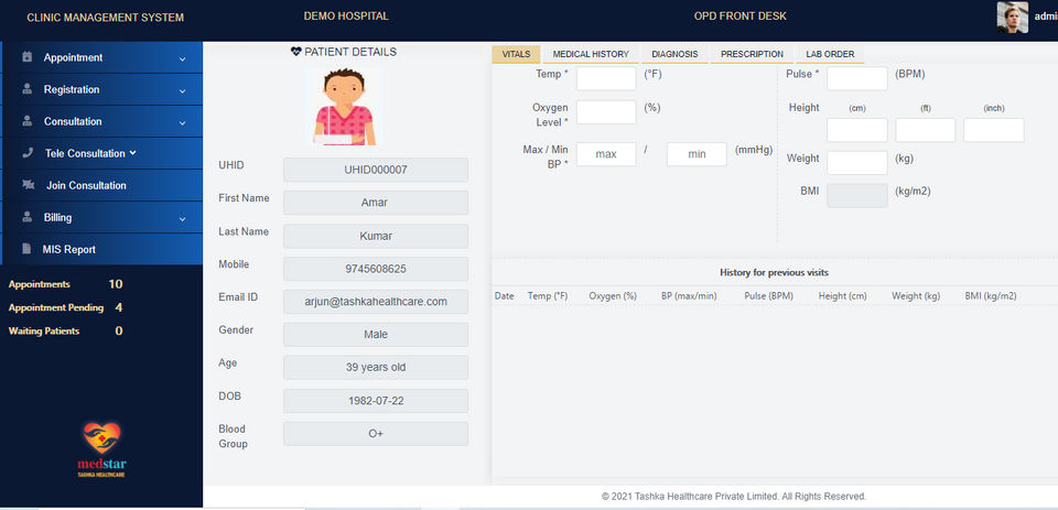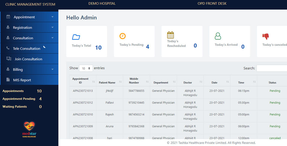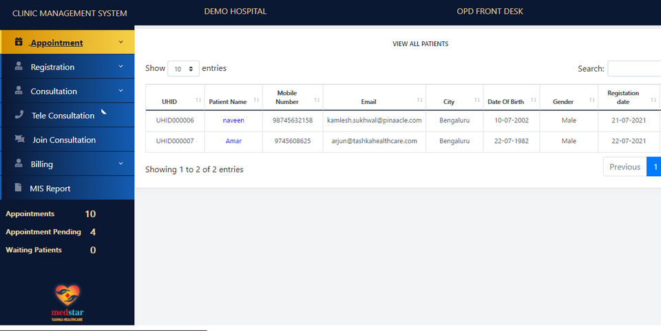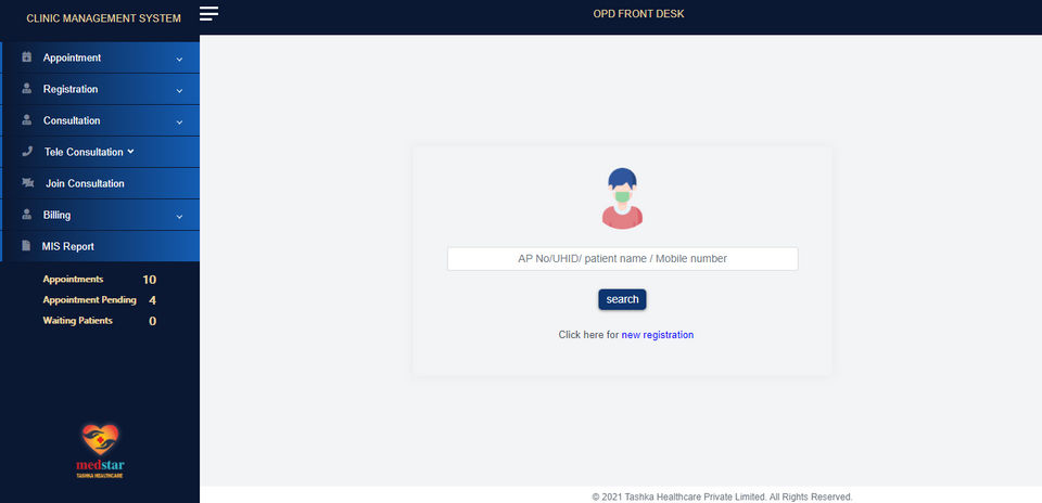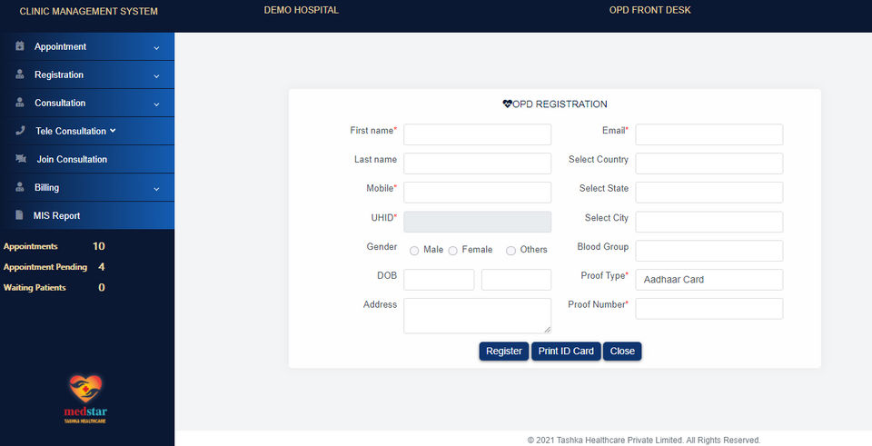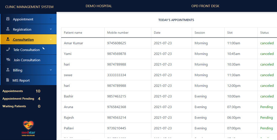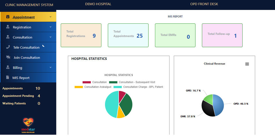 Medstar HIS is the Hospital Management Software used for the below functionalities.