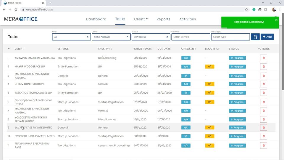 Mera Office is the CRM Software used for the below functionalities.