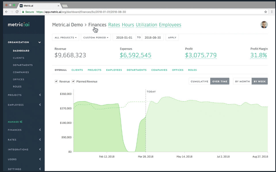 metric.ai is a cloud based platform that manages the needs for you and improves your work. It is designed in a way that it is centralized and you can see the entire process at one place. The features that are mostly used by me are client portal resource management project management time and expense tracking. It creates high level visuals and keeps the track of data. The user can also keep track of progress and working of other employees.