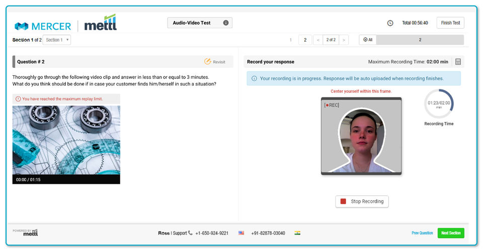 Mettl is the Video Interviewing Software used for the below functionalities.