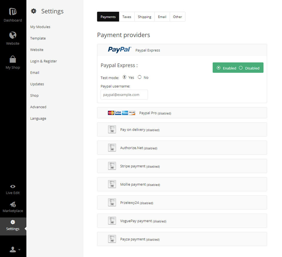 Microweber is the Website Builder Software used for the below functionalities.