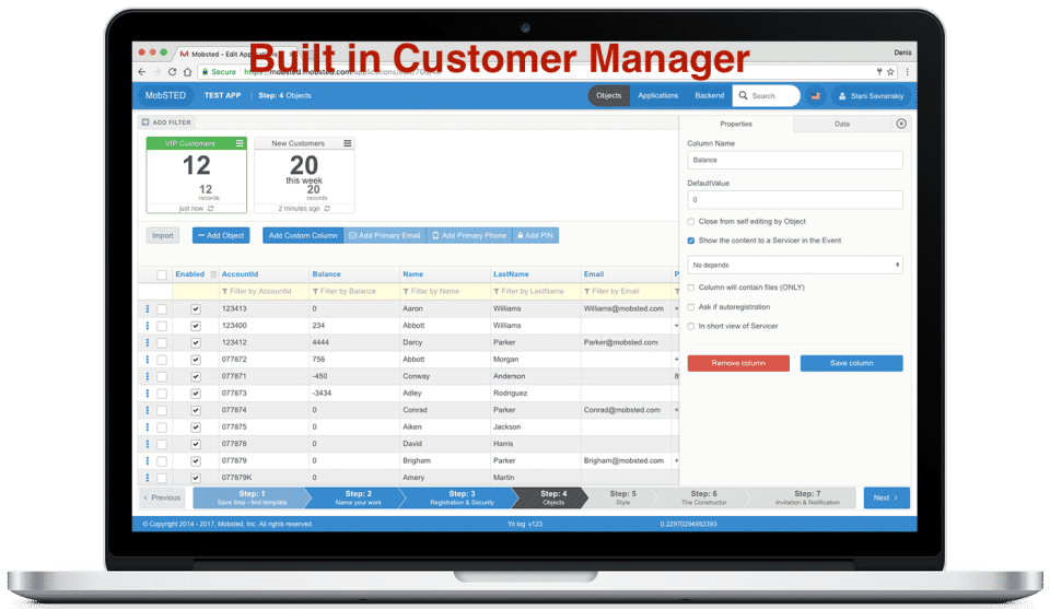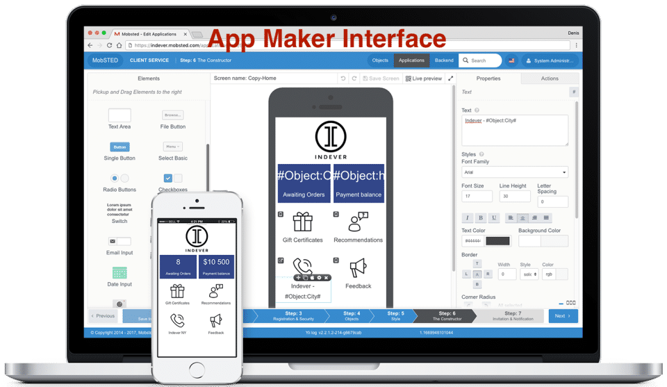 Mobsted is the Application Development Software used for the below functionalities.