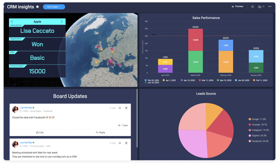 monday sales CRM by monday.com is the CRM Software used for the below functionalities.