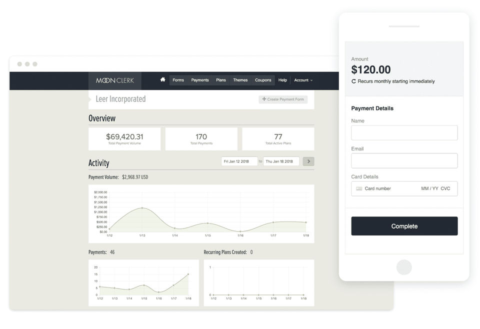 MoonClerk is the Payment Gateway Software used for the below functionalities.