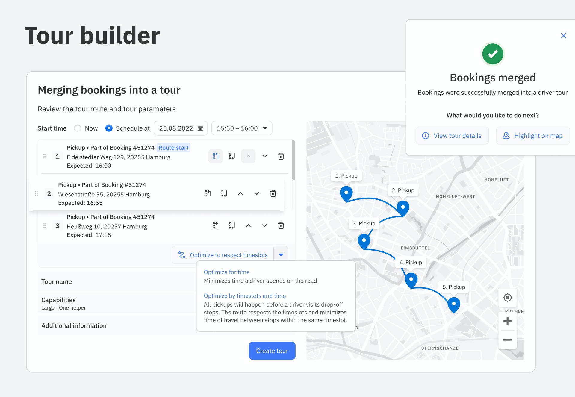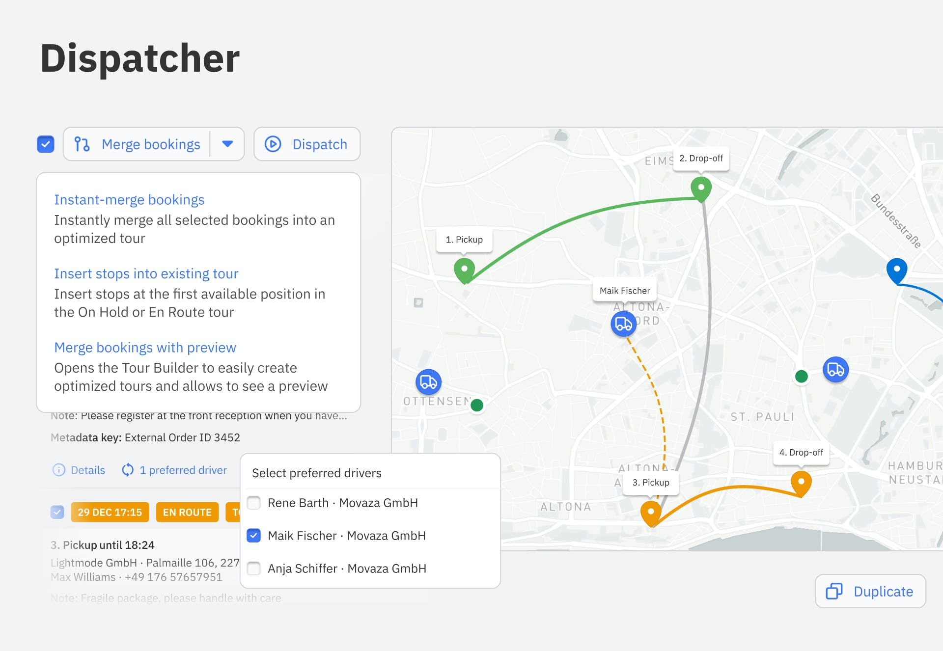 - dispatching and tour building for managers