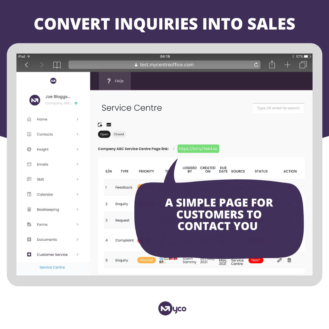- Company Name: My Centre Office