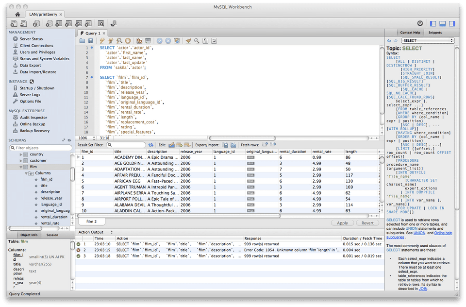 MySQL is definitely functional as it offers many features (of which I don't use a lot but mainly it allows me to set up my local server and I can use the database within IntelliJ where I run my server. Its ability to be compatible with other software used at the company is a plus.