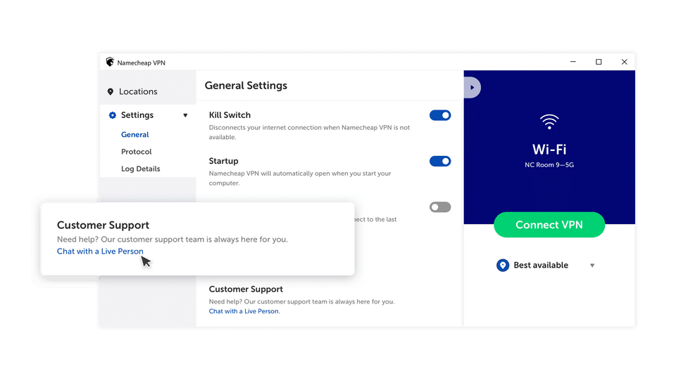 Namecheap VPN provides Phone,Online (Ticket) support.