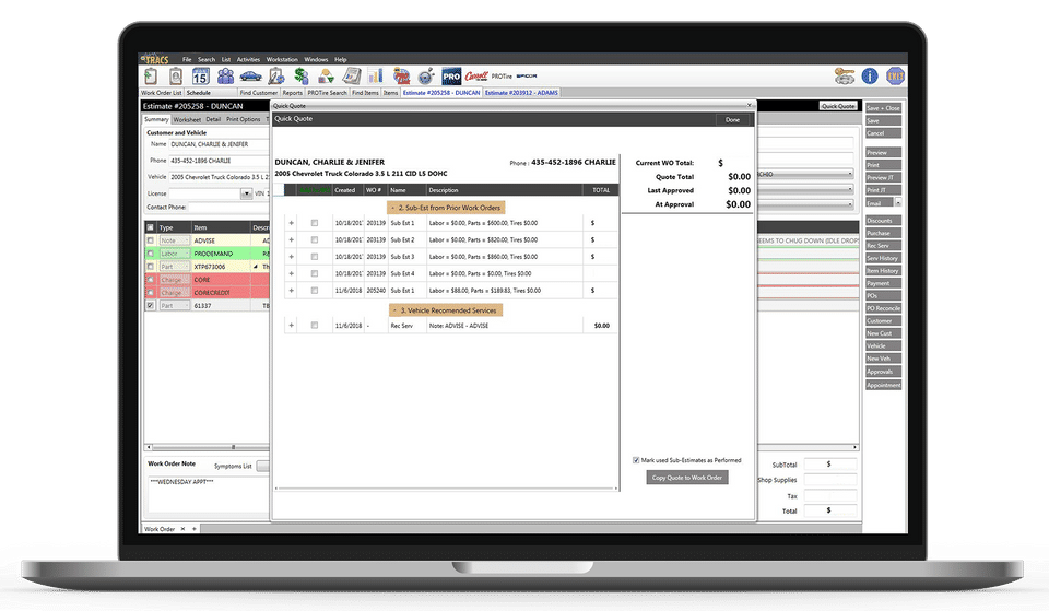 - Customer History/Vehicle Repair History