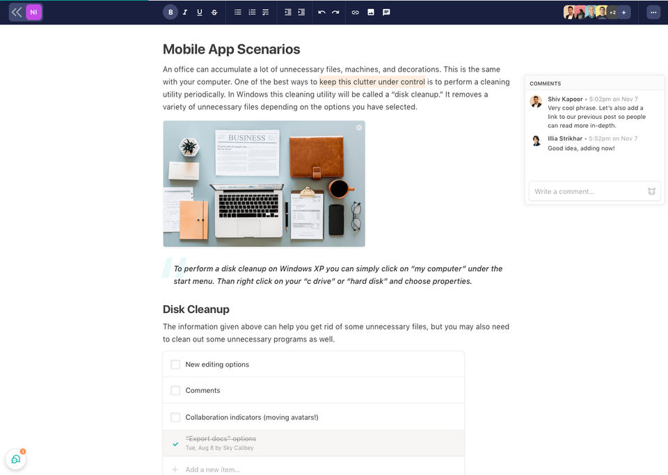And I wish the Docs were more flexible. I could TOTALLY see using these as an SOP library but what keeps us from completely adopting that is the fact that they auto-order themselves (the Docs) according to the last one edited. It'd be really cool to be able to embed *within* a Doc too.