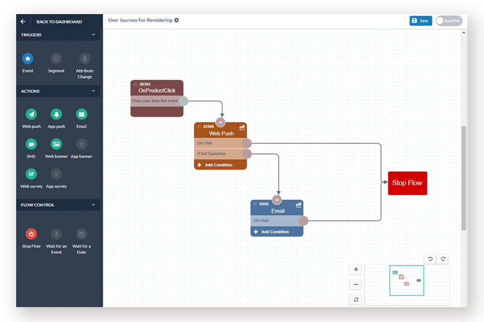 NotifyVisitors comes with a journey designer that allows you to create and induct personalized journeys based on customer behavior and engagements.