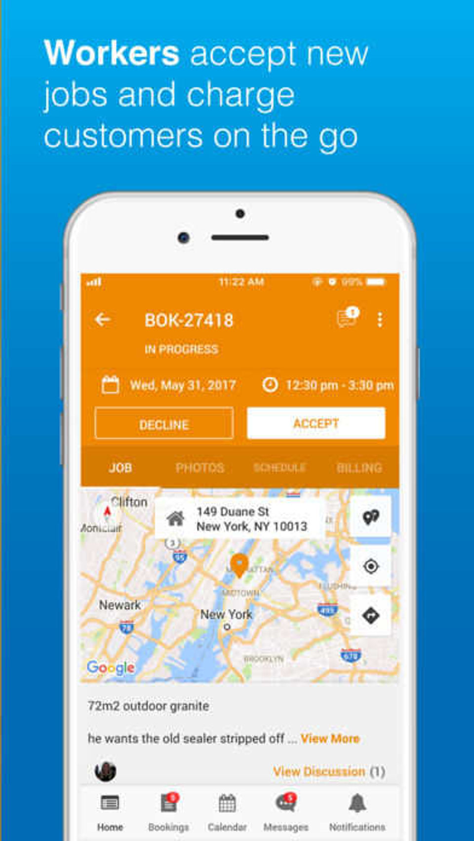 Customer bookings through the customer portal. Automated job allocation. Customer and booking workflow management and automated communication.
