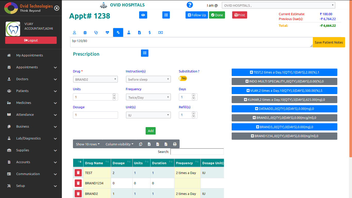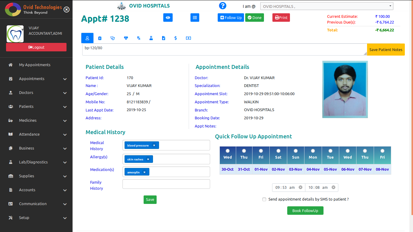 OVID HMS is a cloud-based hospital management software for managing Hospitals, Clinics, Pharmacies, Pathology Labs, Diagnostic Centres , Dental Practices of any size and across cities and states. It has OPD, IPD, Pharmacy , Pathology Labs, Radiology , HRM , Referrals, MIS Reports, Customised Print Headers for Results and Bills , Patient Data Management , Doctors and User data Management , Accounts , Expenses , Attendance , Leaves , Salaries , Incentives and Bonus , Vendor Data Management etc.