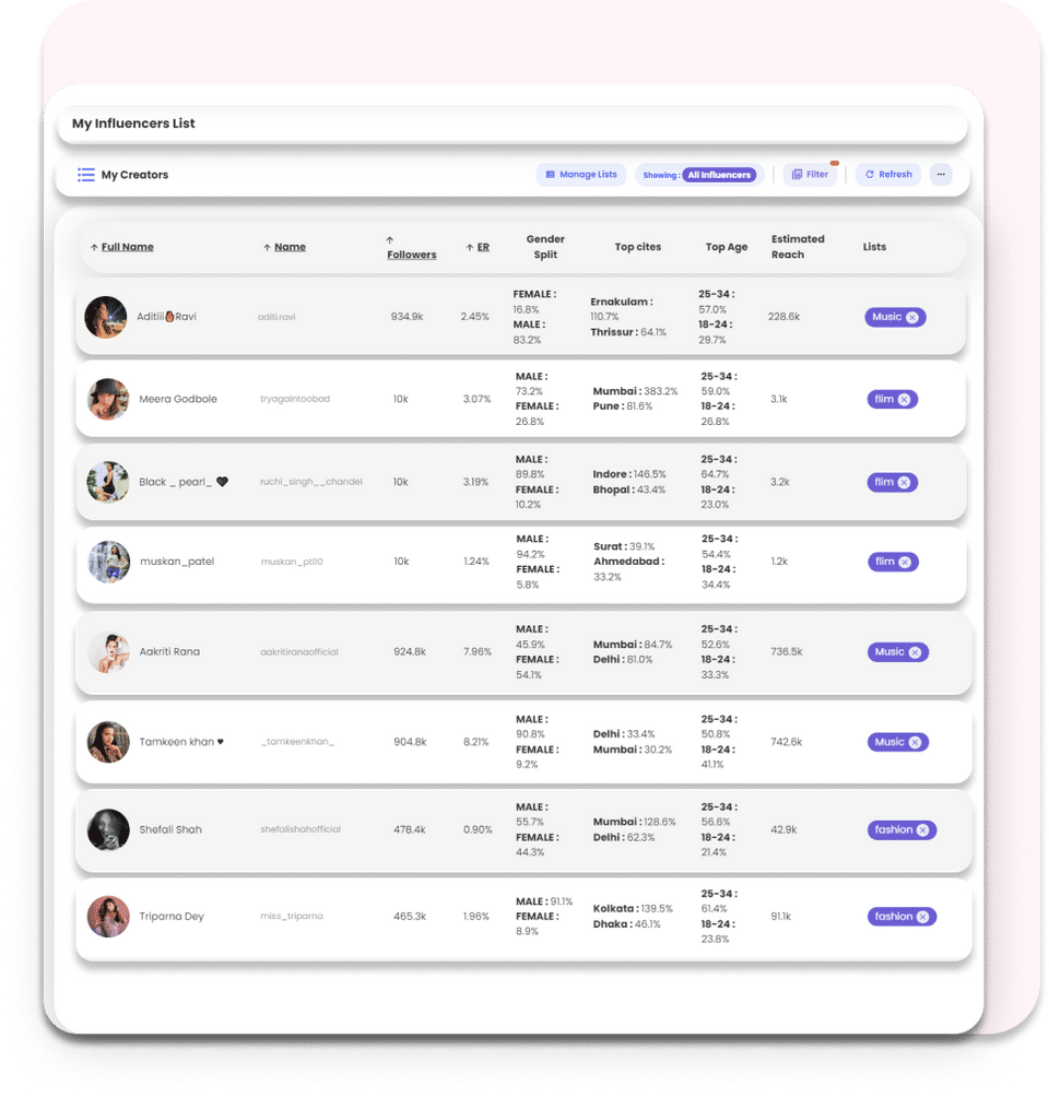 - Search upto 1500* influencers/download upto 100* influencer reports from Global Database