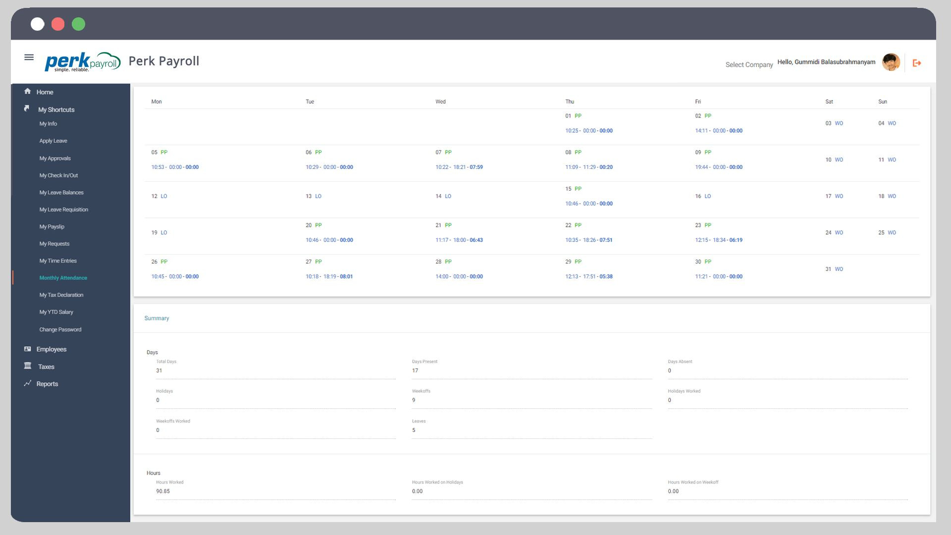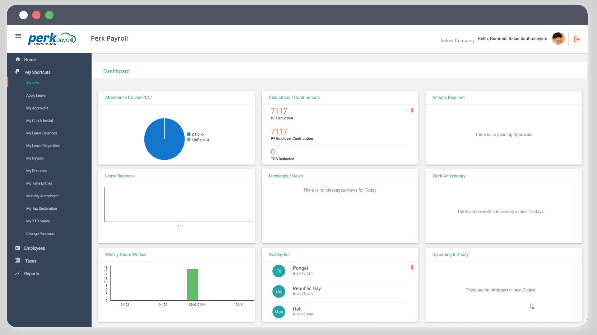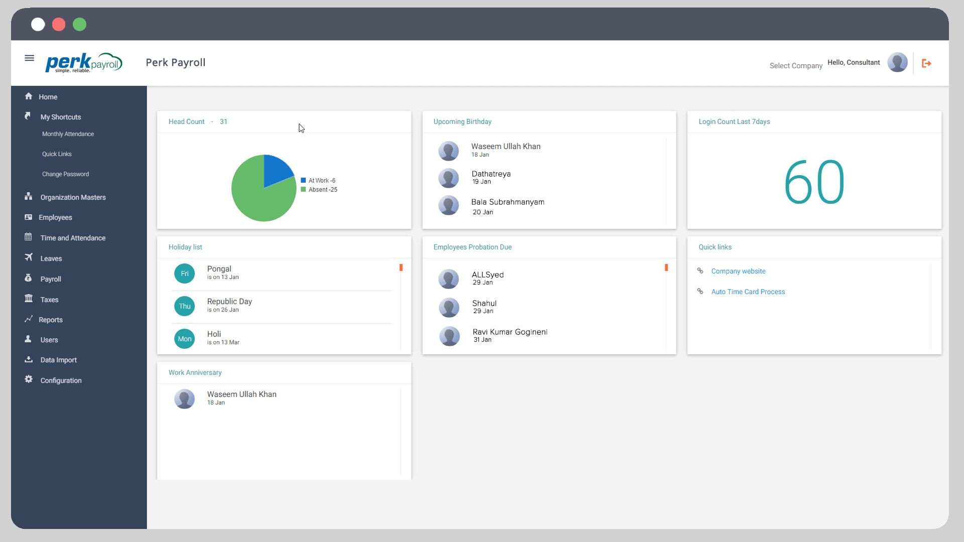 PerkPayroll is the Dashboard Software For Mac used for the below functionalities.