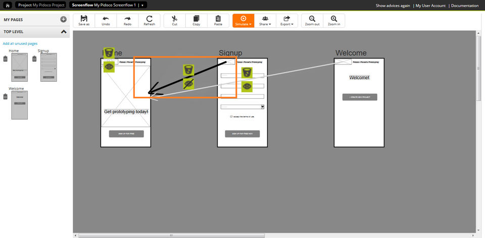 Mainly used Pidocco for wireframing. It made it easy to share wireframes with colleagues and user tests.