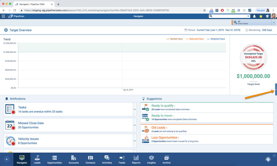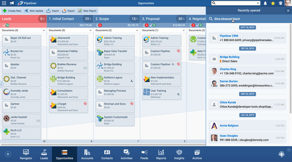 Pipeliner CRM interface is user friendly; each user can customize views to suit their needs, everything is visualized for easy use and easy navigation