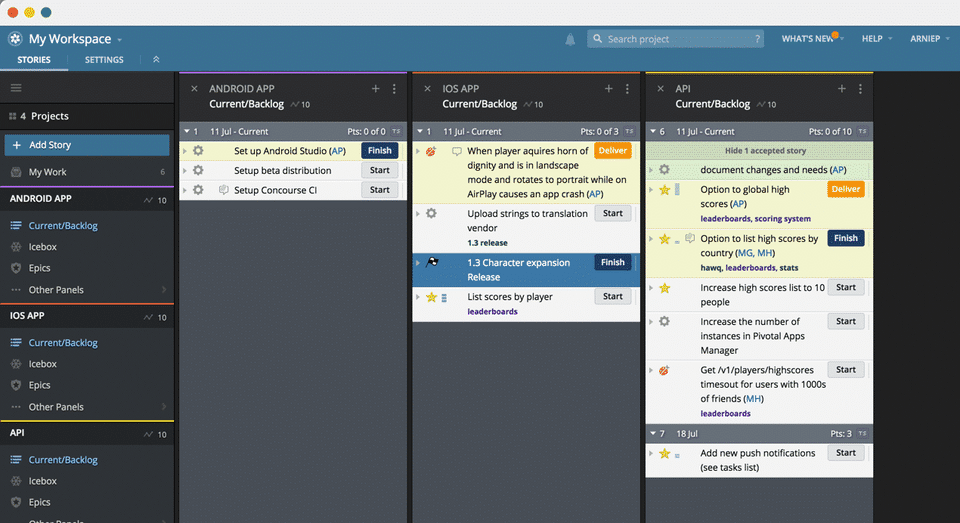 Pivotal does a very basic job of agile scrum management. The analytics dashboard is handy for project managers, but the organization and look and feel of the sprint board could be greatly improved.