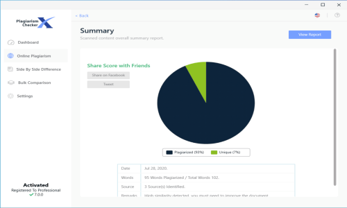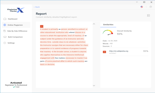 Plagiarism Checker X is the Plagiarism Checker Software used for the below functionalities.