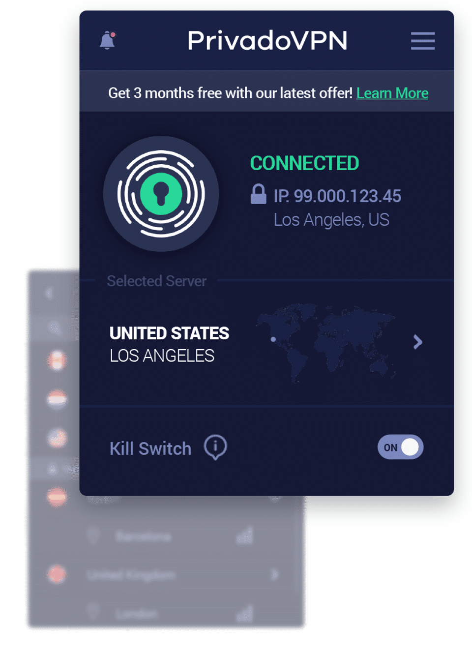 PrivadoVPN is the Free VPN Software used for the below functionalities.