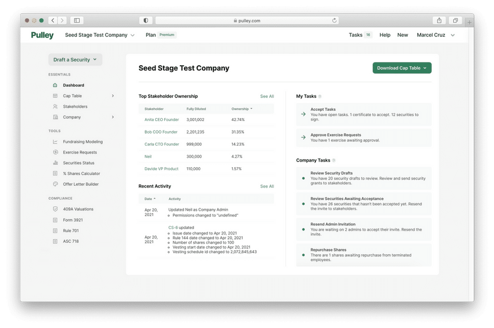 Pulley makes equity management straightforward. It's been really great having them alongside me as my company grows. They are my own 'cap table experts'. Very responsive. If you want clarity on your cap table, go with Pulley.