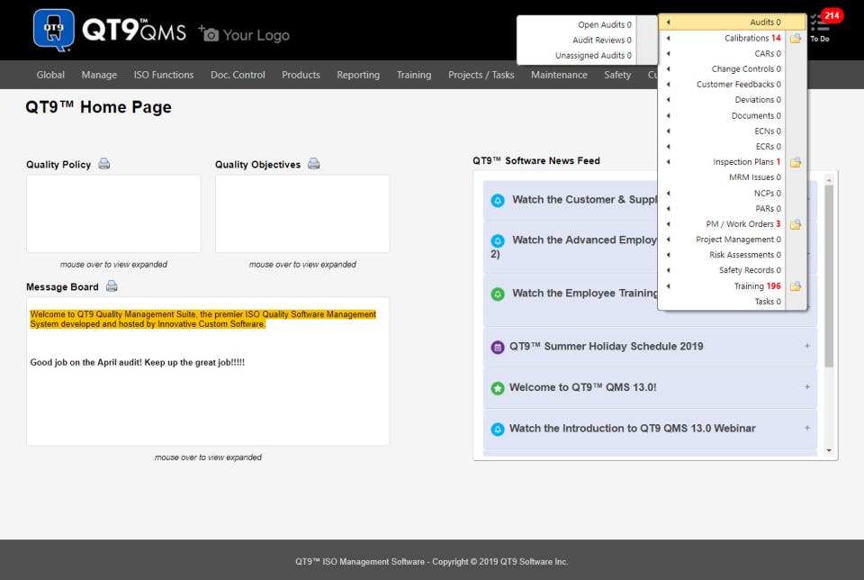 QT9 QMS provides Help Guides,On-Site Training,Webinars,Video Guides for the software training.