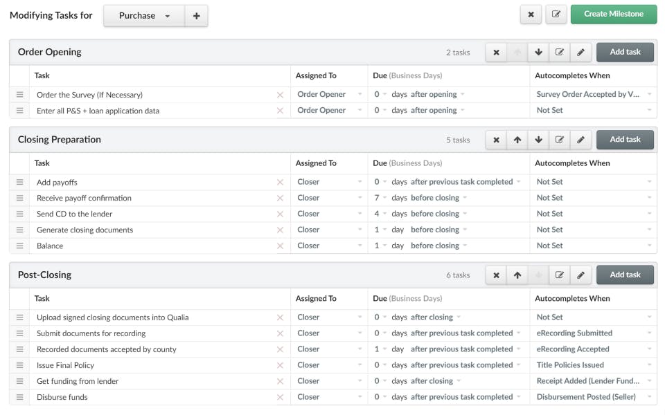 - Automate Workflows: Let the Qualia Core engine assign tasks, generate documents, and place vendor orders automatically.
