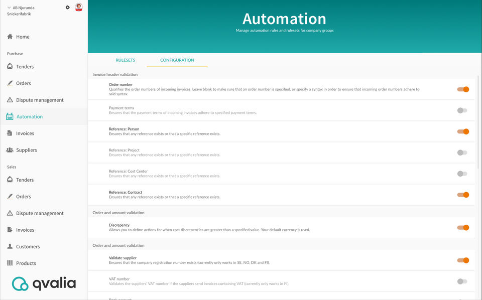 - Automated invoice validation