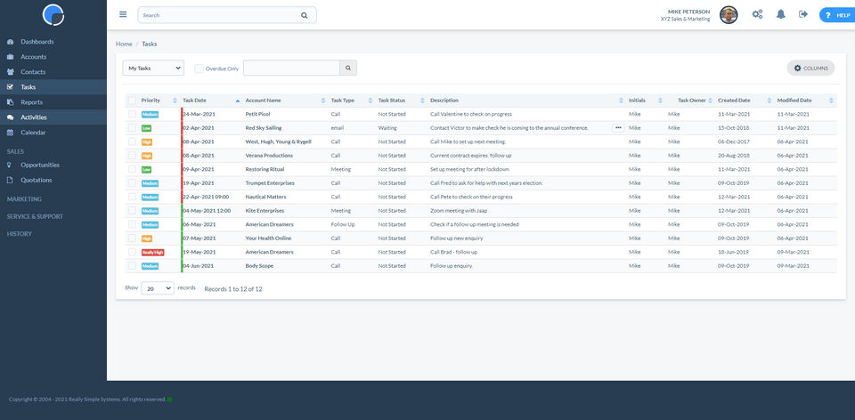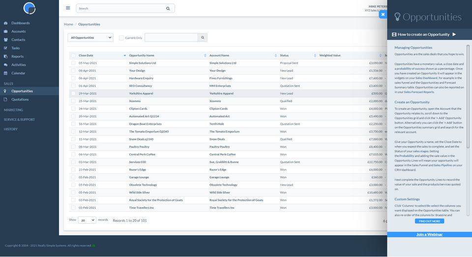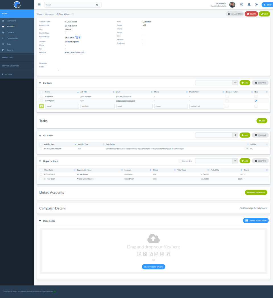 Really Simple Systems CRM is the CRM Software used for the below functionalities.