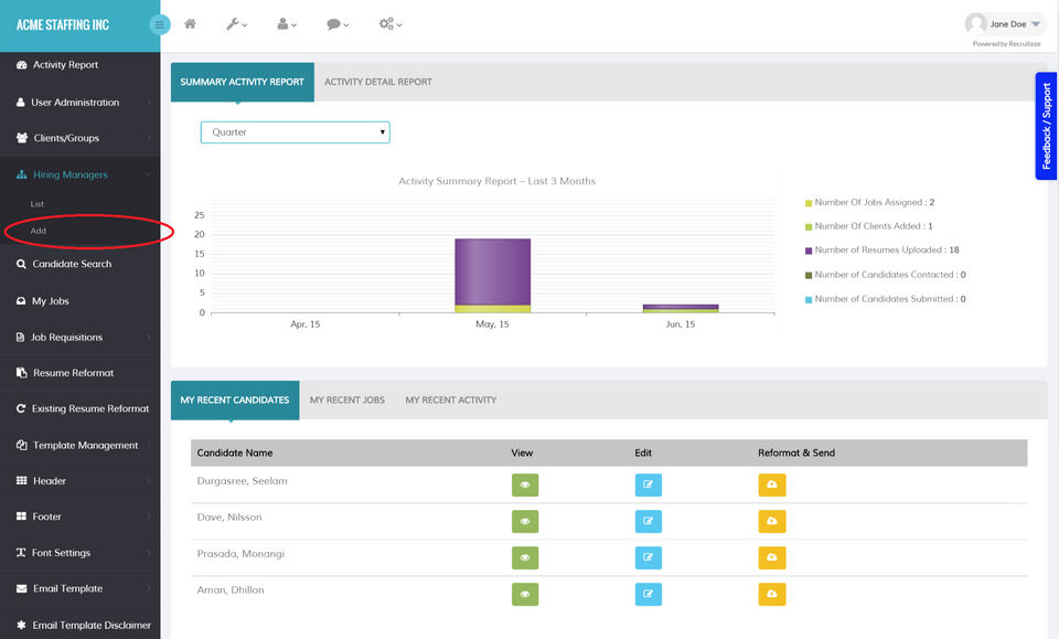 Recruiteze is the Applicant Tracking System used for the below functionalities.
